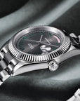 Hochwertige Materialien und lässiges Design, Saphir-Zifferblattfenster mit AR-Beschichtung, Edelstahlkonstruktion mit verschraubter Krone, massiver Gehäuseboden, solides und flexibles Uhrenarmband mit klassischer Faltschließe