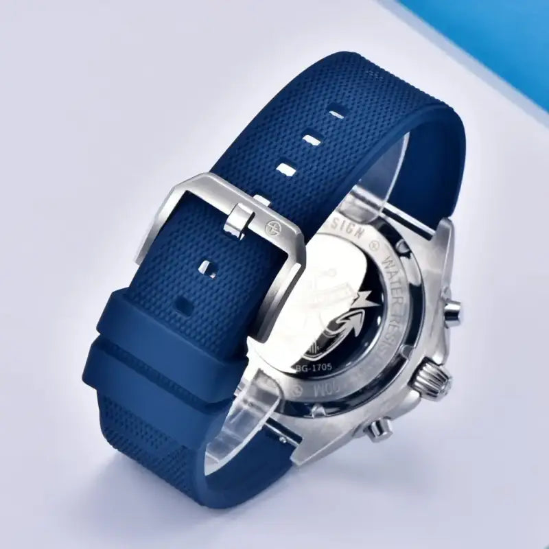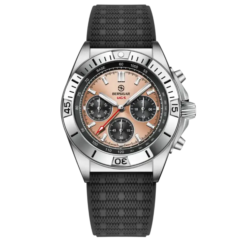 Améliorez votre style avec le BERSIGAR BELLATRIX 1705. Dotée de matériaux haut de gamme et d'un design décontracté, cette montre n'est pas seulement élégante mais aussi durable. La fenêtre du cadran en saphir, la construction en acier inoxydable avec couronne vissée, le fond de boîtier plein et le bracelet en silicone flexible avec boucle en font la combinaison parfaite de fonctionnalité et de mode.