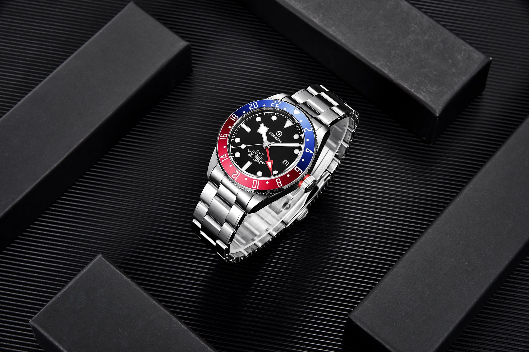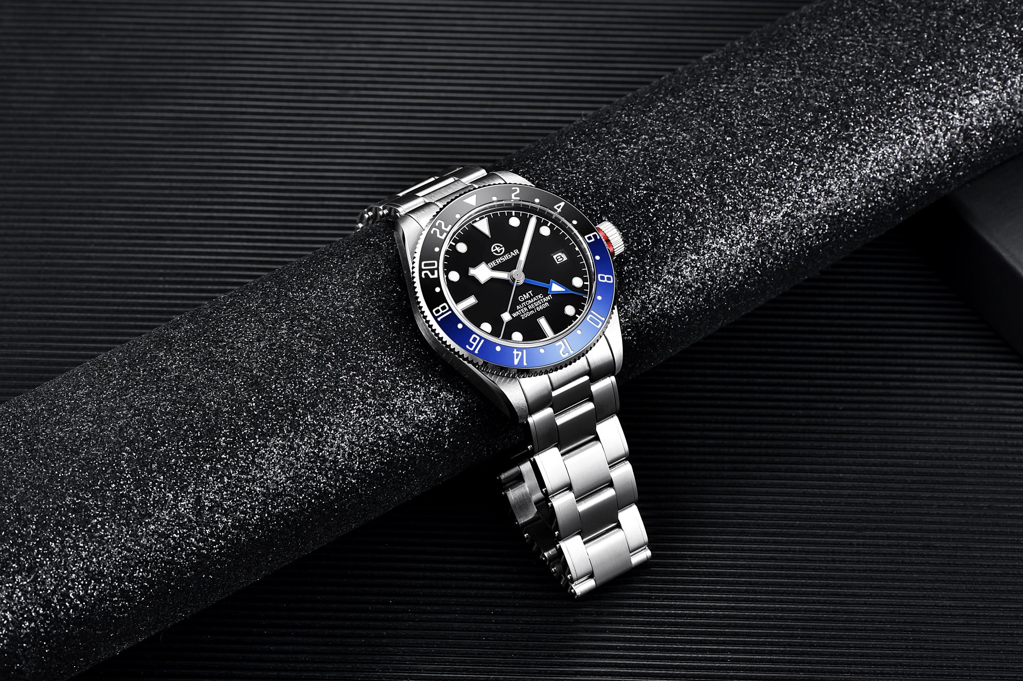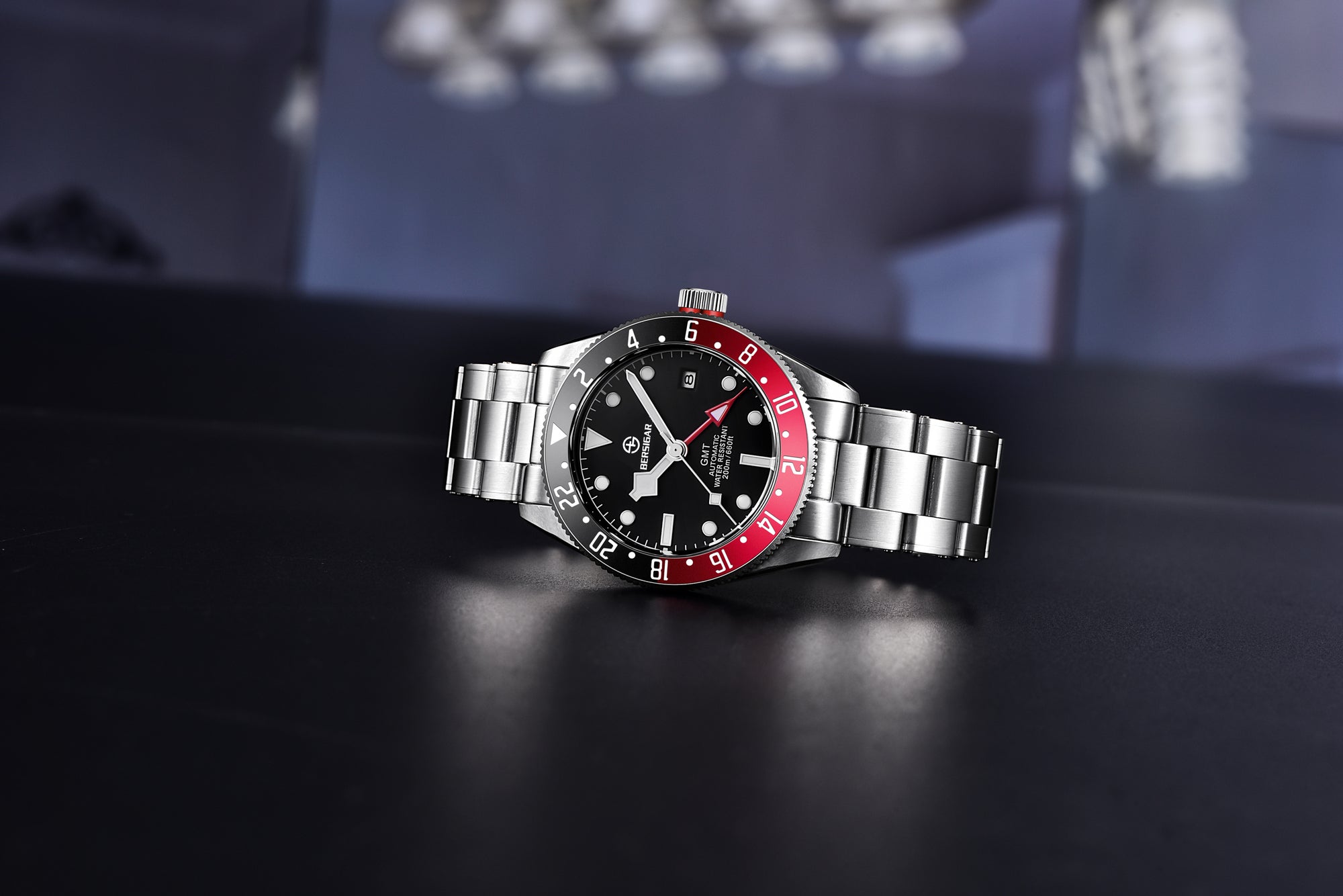 Mouvement automatique Pearl DG5833 GMT de haute qualité, offrant une grande précision de l'heure, un remontage automatique et une réserve de marche de plus de 36 heures.