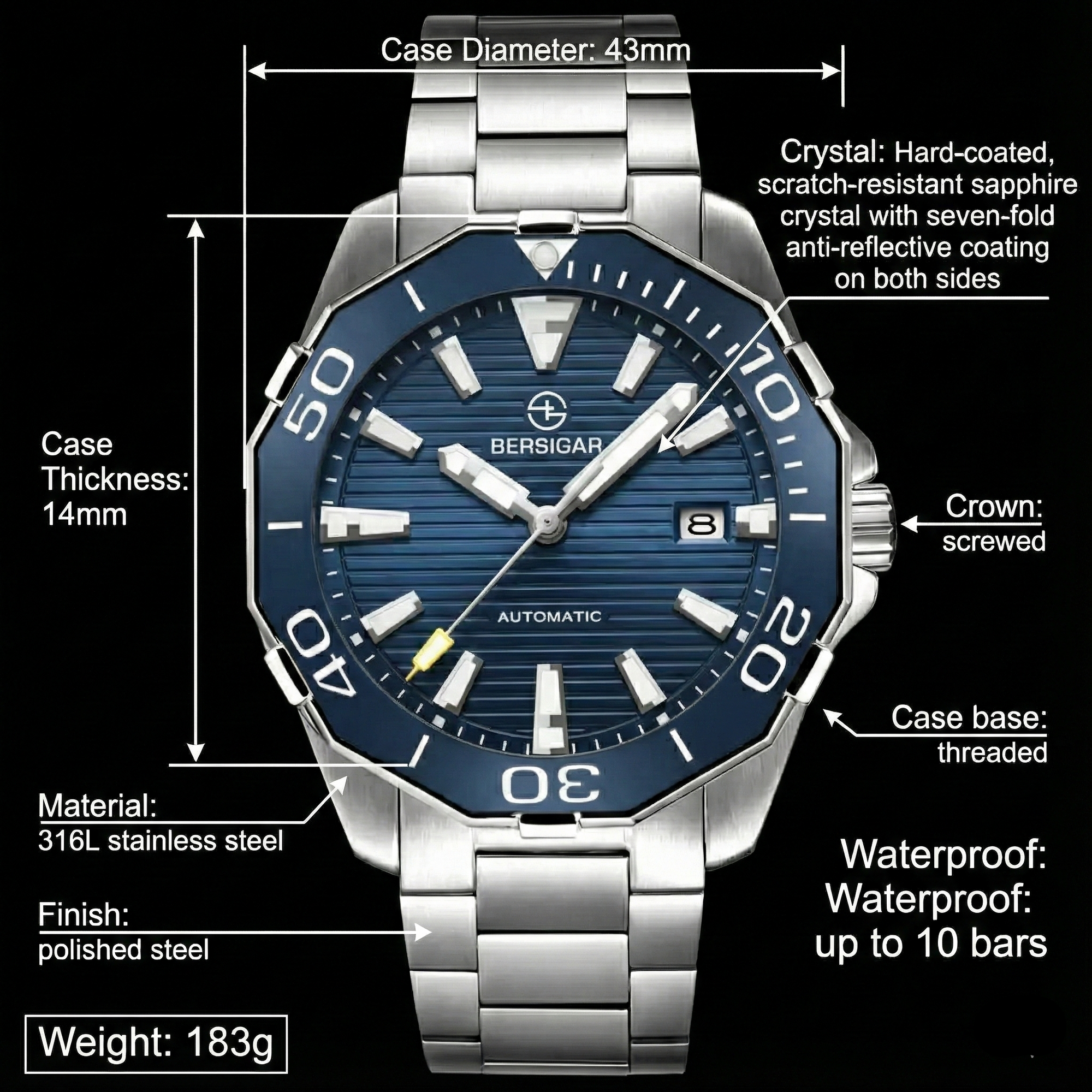 BERSIGAR TIMECRAFT 1668 BLUE - watches