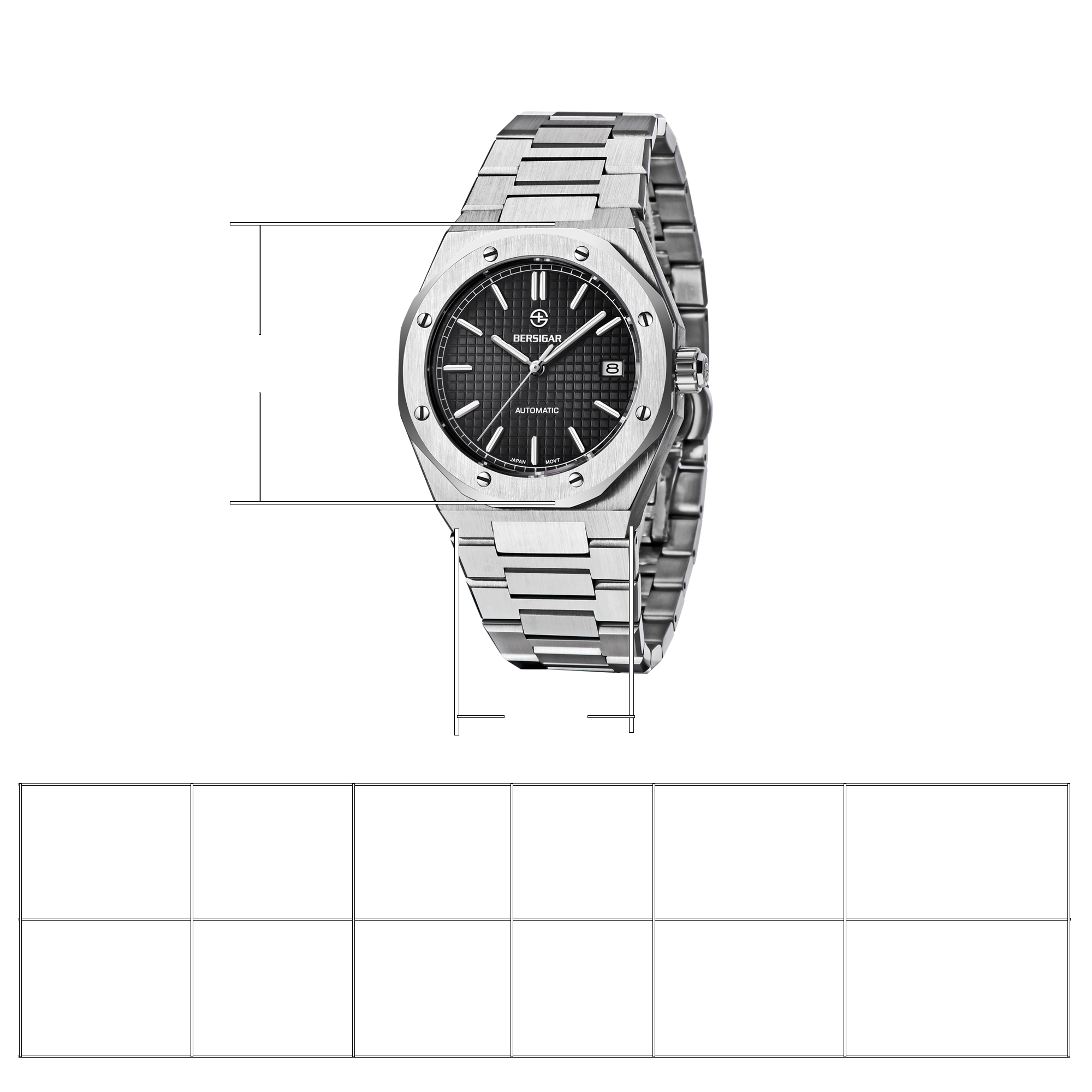 Quality Japanese Seiko NH35A automatic mechanical movement, very accurate timekeeping, self-winding, and the power of the spring can reserve more than 36 hours. Its architecture, manufacturing and innovative features make it exceptionally precise and reliable.