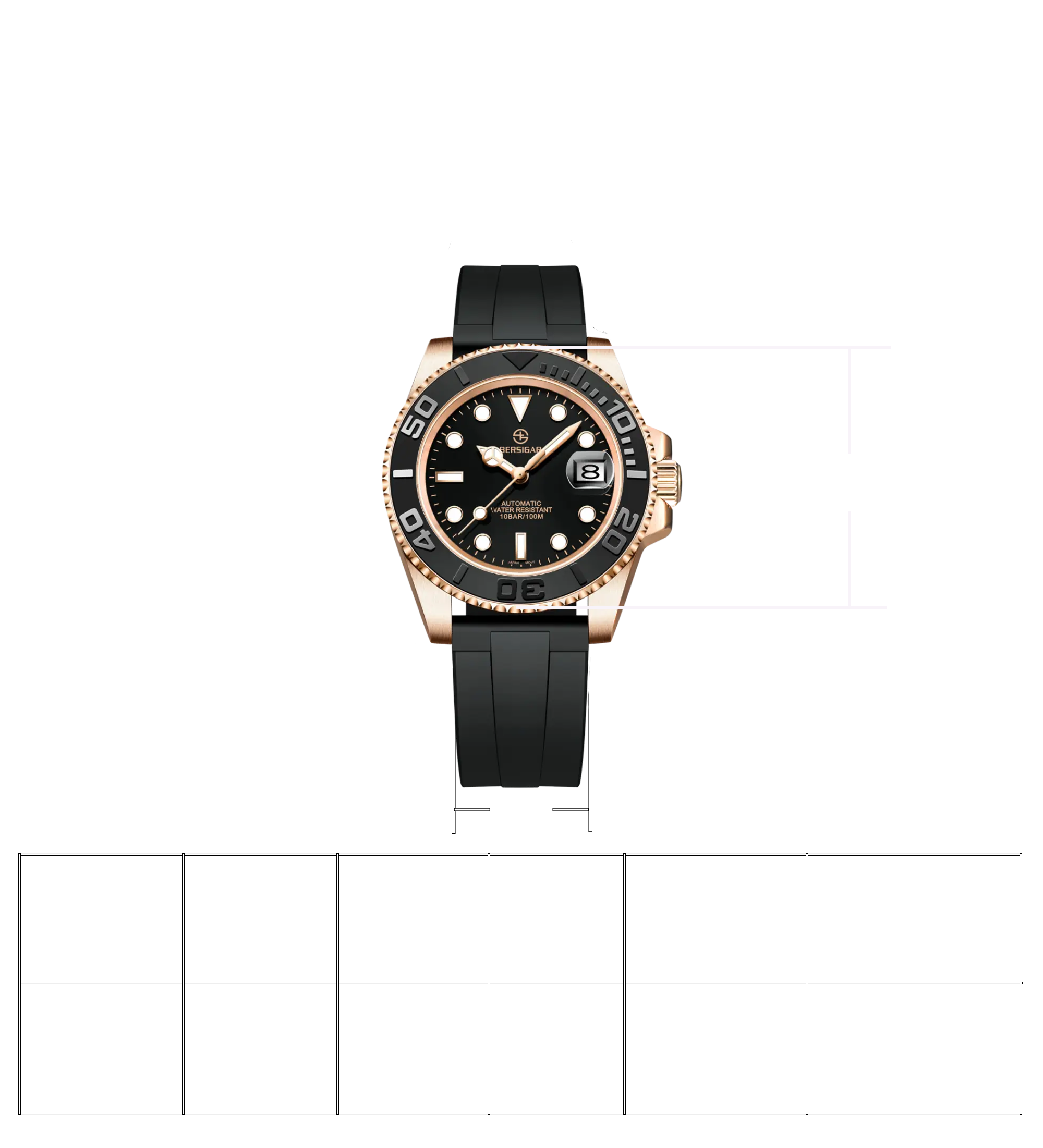 Premium materials and casual design, Crystal Sapphire Glass dial window, full 316L stainless steel construction with screw-down crown, Ceramic Bezel can be rotated counterclockwise and transparent case back, solid and flexible watchband with classic fold-over clasp.