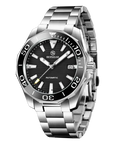 Premium materials and casual design,Sapphiredial window, full stainless steel construction withscrew-downcrown, theceramic bezelcan be rotated counterclockwise and transparent case back, solid and flexible watchband with classic fold-over clasp, or genuine leather watchband with buckle.